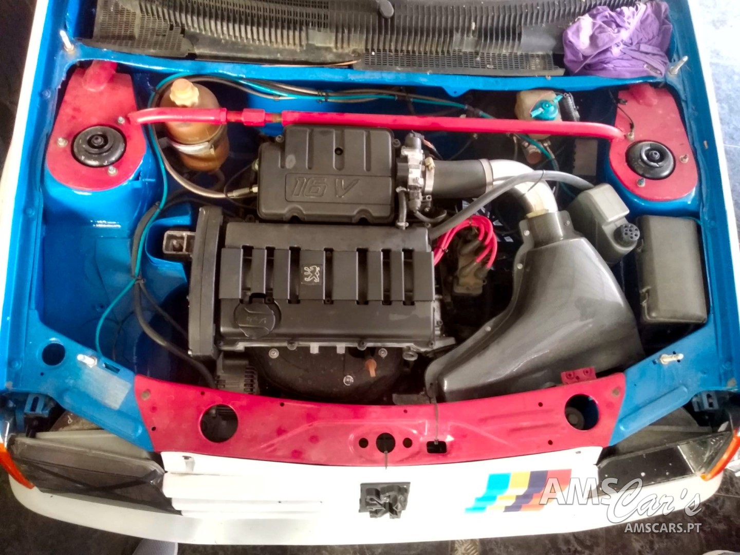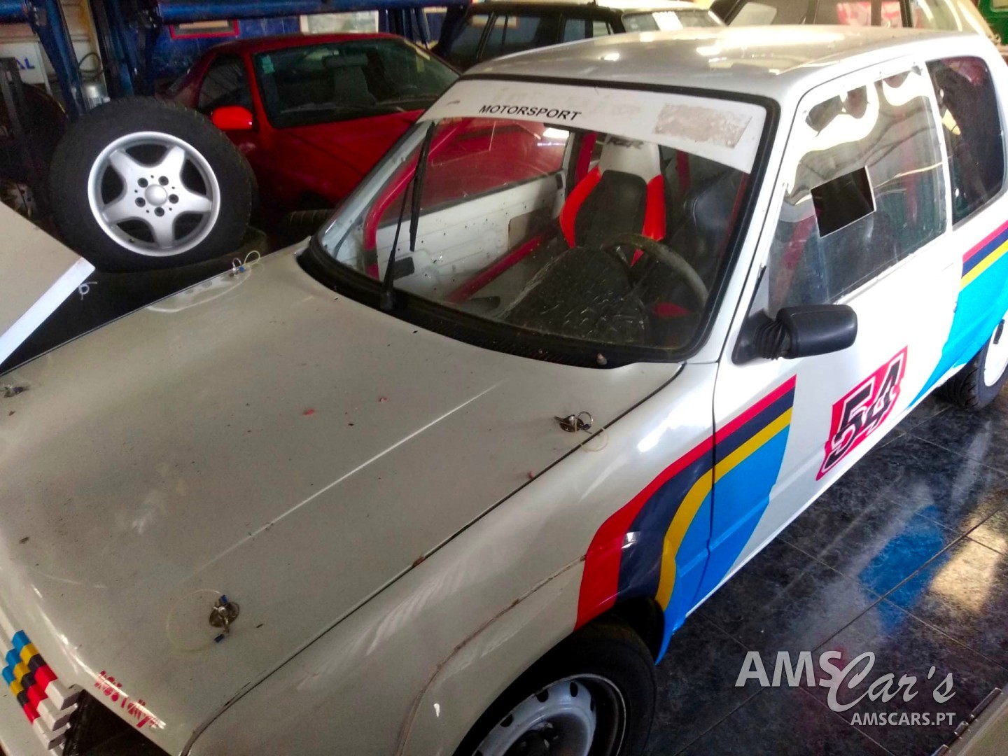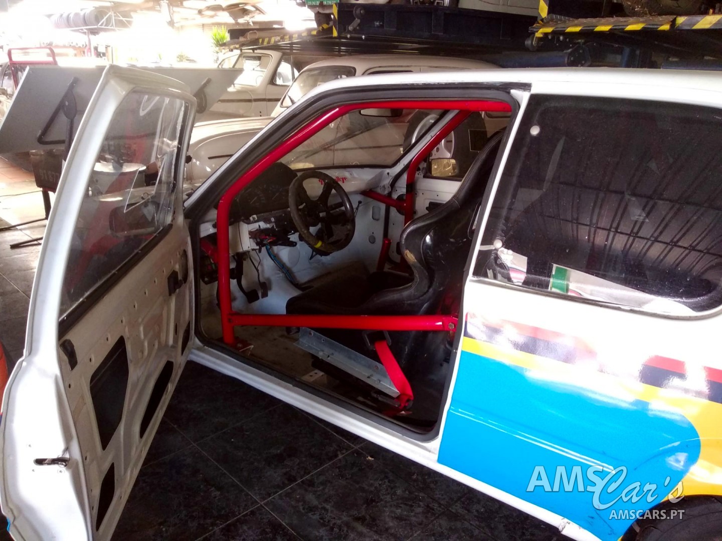suspensão monroe com molas sparco, extintor, rollbar, circuito malha aço gasolina e travões, discos e travagem maior dimensões berlingo, deposito com bomba injetora , pneus competição ,motor recondicionado com afinação a 130 , pá de admissão ar competição , volante de competição